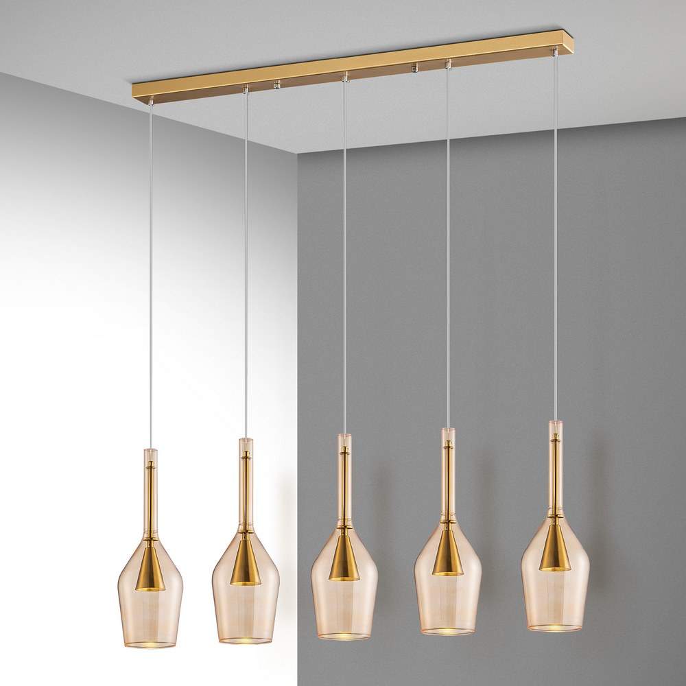尺寸:L1080 W140 H420~1200mm 光源:附贈 G10 5W X 5 3000K 材質:鋼材、琥珀色玻璃