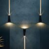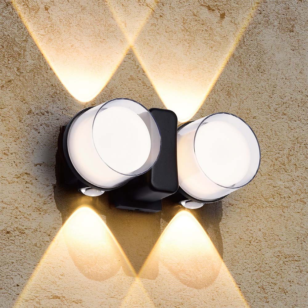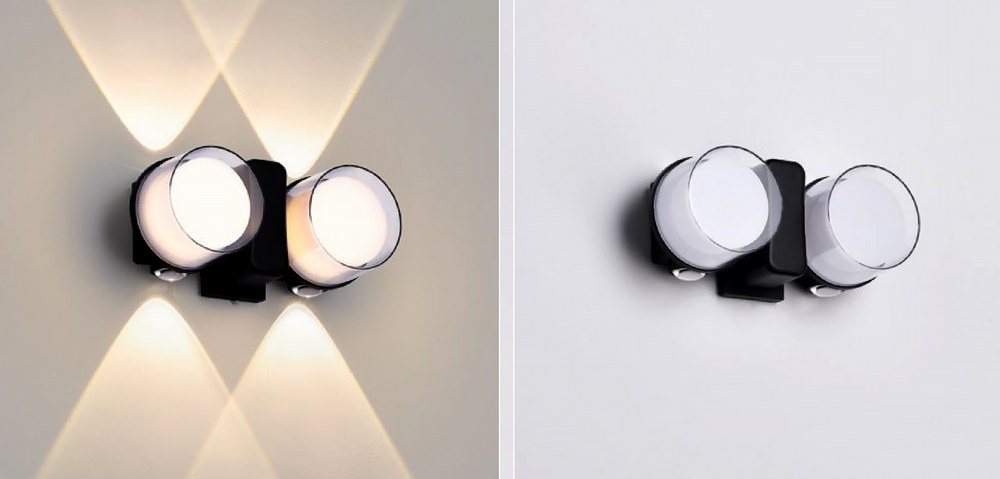 尺寸:W200 H100 D90mm 光源:LED 10W 3000K 上下+ 正面發光 IP65 戶外可用 材質:鋁材烤漆. 壓克力