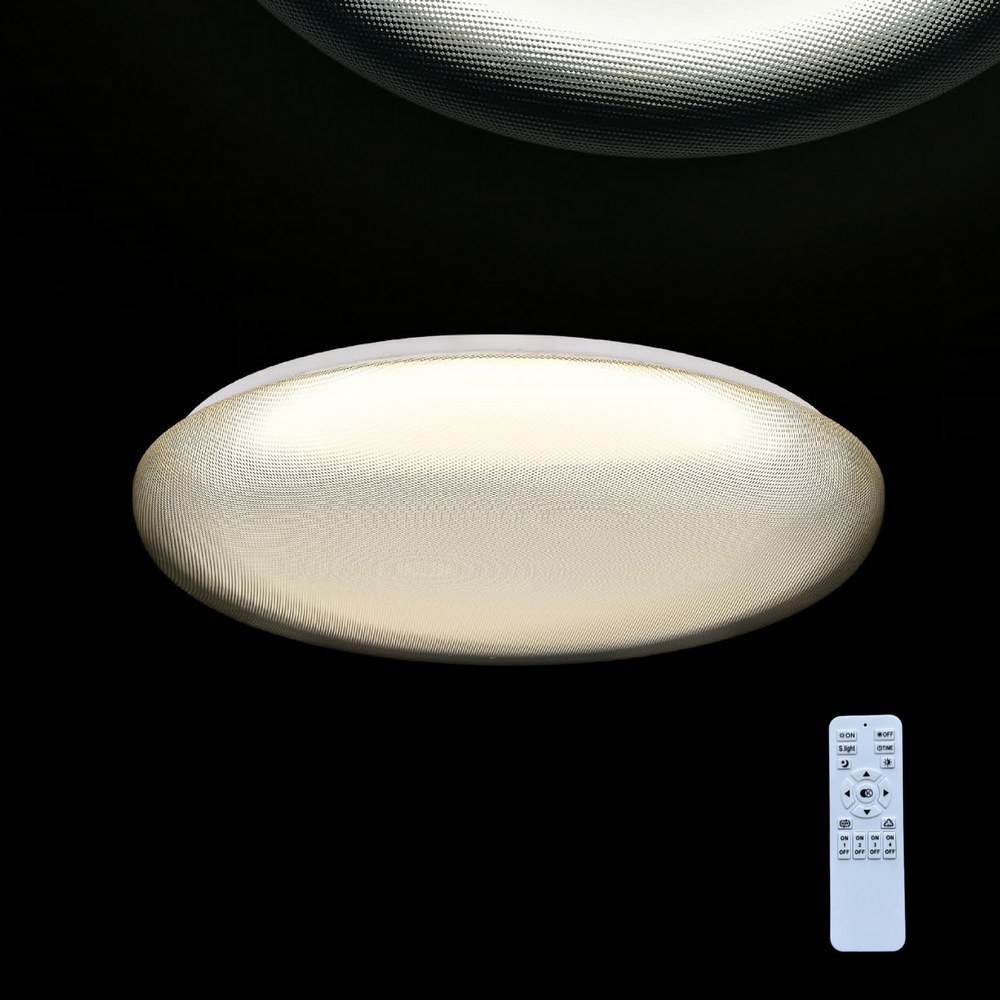 尺寸:Ø400 H90mm 材質:金屬,石化合成物 光源:(F)LED 48W / 三色無極調光 附遙控器 (可改為三色切換 不加遙控 價格請來電另詢)
