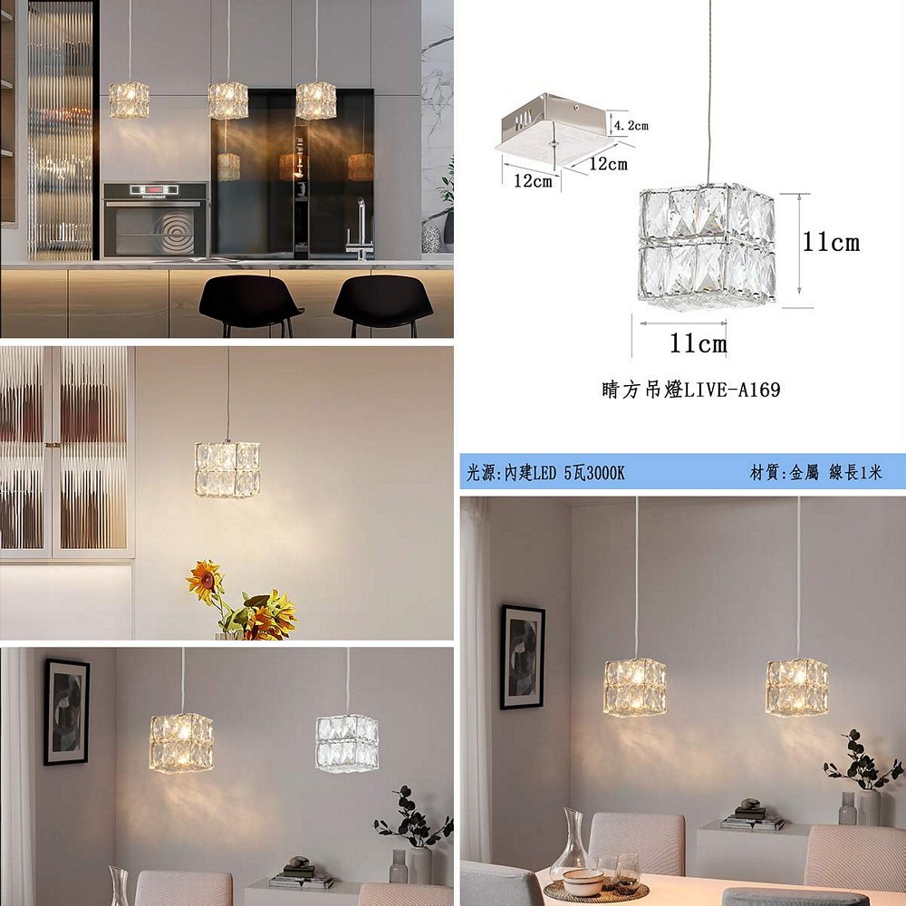 LED 5W 3000K睛方水晶吊燈